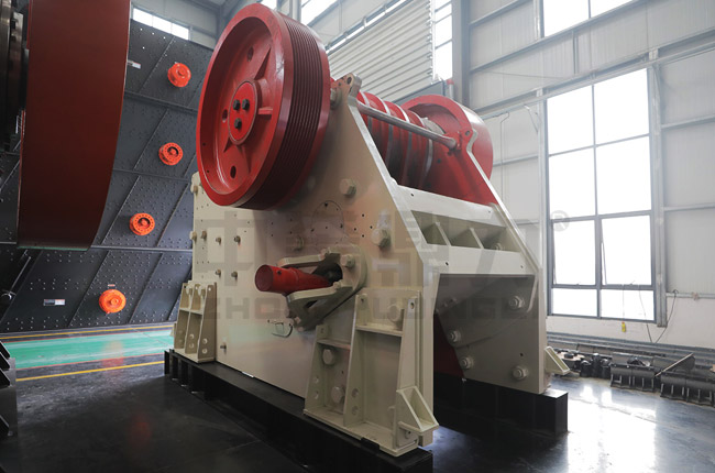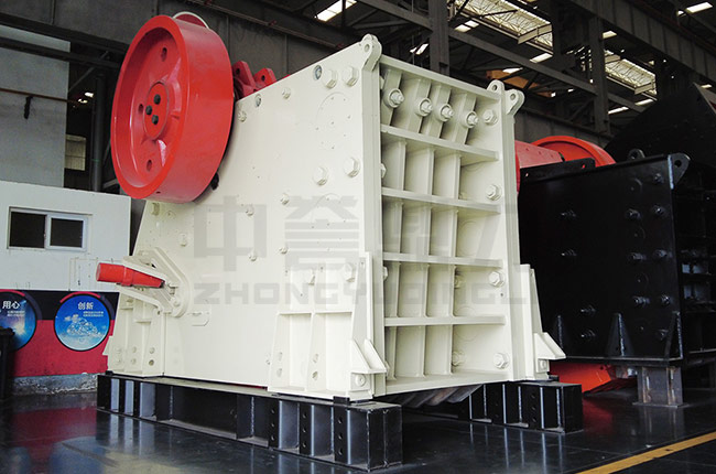 電動機驅動皮帶和皮帶輪,通過偏心軸使動顎上下運動,當動顎上升時肘板與動顎間夾角變大,從而推動動顎板向固定顎板接近,與其同時物料被壓碎或劈碎,達到破碎的目的;當動顎下行時,肘板與動顎夾角變小,動顎板在拉桿,彈簧的作用下,離開固定顎板,此時已破碎物料從破碎腔下口排出。