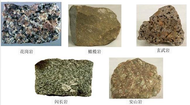 常見巖漿巖有:花崗巖、花崗斑石、流紋巖、正長(zhǎng)石、閃長(zhǎng)石、安山石、輝長(zhǎng)巖和玄武巖等(強(qiáng)度約為250兆帕)。