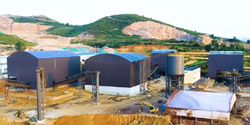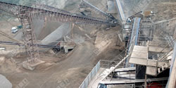 石料生產(chǎn)線在工作過程中,大塊石料經(jīng)料倉由振動給料機(jī)均勻地送進(jìn)重型錘式破碎機(jī)進(jìn)行粗碎,粗碎后的石料由皮帶輸送機(jī)送入錘式破碎機(jī)(或反擊式破碎機(jī))進(jìn)行中碎,中碎后的石料由膠帶輸送機(jī)送進(jìn)振動篩進(jìn)行篩分,符合規(guī)格的石料和成品砂子(篩下物)由膠帶輸送機(jī)送至成品料堆;不符合規(guī)格的大顆粒石料(篩上物)由皮帶輸送機(jī)返回至錘式破碎機(jī)再次進(jìn)行破碎處理,破碎后的石料再經(jīng)過膠帶輸送機(jī)送進(jìn)振動篩進(jìn)行篩分,這樣形成閉路多次循環(huán)。
