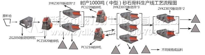 由一臺(tái)振動(dòng)給料機(jī)均勻給料,進(jìn)入破碎設(shè)備進(jìn)行物料破碎,破碎物料接著進(jìn)入振動(dòng)篩進(jìn)行篩分,不滿足粒度物料直接進(jìn)入下破碎設(shè)備進(jìn)行再次破碎?梢愿鶕(jù)成品料顆粒粒度的需求增加破碎設(shè)備和篩網(wǎng)不同孔徑的振動(dòng)篩進(jìn)行砂石生產(chǎn)線砂石物料的生產(chǎn)?梢钥闯龃藯l生產(chǎn)線生產(chǎn)物料為顆粒比較細(xì)小砂石料。