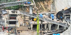 物料倉中的石頭原料由振動給料機設(shè)備輸送至破碎機進(jìn)行破碎處理,使用給料機設(shè)備送料可以生產(chǎn)線的穩(wěn)定、均勻;大塊或硬度較大的物料一般需要兩級破碎處理,初級破碎機設(shè)備將大塊的石頭破碎成較小的物料,然后送至二級破碎機再次進(jìn)行細(xì)碎處理;破碎后的物料再使用振動篩進(jìn)行篩分選級,篩選出符合規(guī)格的骨料,由輸送帶送至成品料區(qū),不符合規(guī)格的再次返回至破碎機進(jìn)行破碎;如果需要制砂生產(chǎn),根據(jù)需求一部分的物料送至制砂機進(jìn)行制砂處理,制砂機具有細(xì)碎、整形的性能,加工成符合規(guī)格的砂子料;為了使砂子料的品質(zhì)更高,需配置洗砂機對砂子進(jìn)行清洗,提高其質(zhì)量,然后成品砂送至成品料倉。
