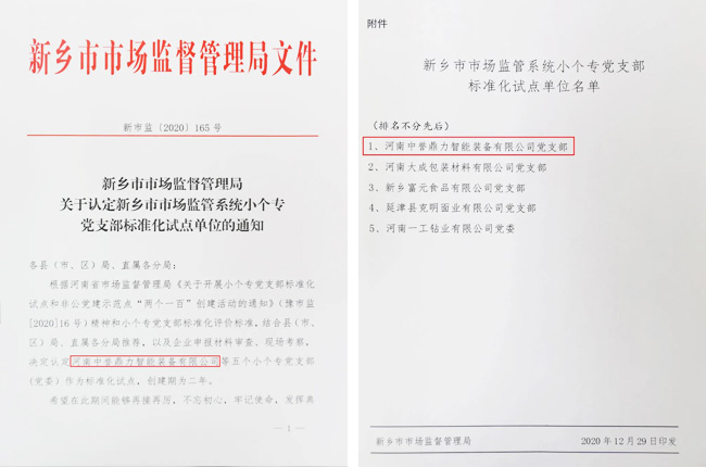 會(huì)議宣讀了河南省、新鄉(xiāng)市局小個(gè)專黨建工作聯(lián)系點(diǎn)、點(diǎn)和小個(gè)專黨支部化試點(diǎn)單位名單,河南中譽(yù)鼎力智能裝備有限公司黨支部成功入選新鄉(xiāng)市市場監(jiān)管系統(tǒng)“小個(gè)專黨支部化試點(diǎn)單位”名單!