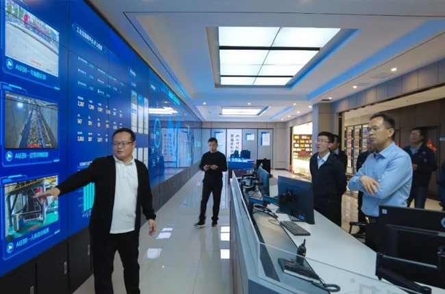 實(shí)地考察建材項(xiàng)目中控室,了解智慧礦山管理方式