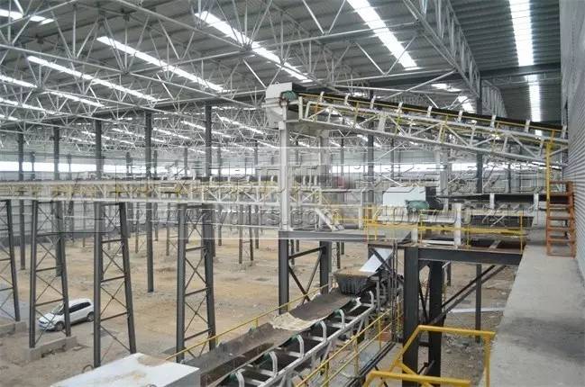 上圖為成品料料倉,布料皮帶機(jī)利用移動(dòng)小車布料,提高石料存料量,每種產(chǎn)品存料量達(dá)到2.5萬噸,總存料量達(dá)到10萬噸。