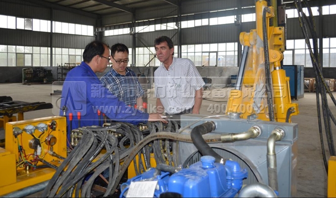 Colin 和 Craigo要為其公司選購能同時左右平移及左右偏移角度的鉆機設(shè)備,其之前已準(zhǔn)備購買德的某種鉆機,但終因其高額的價格而退避三舍,為此他們來到中尋找類似德鉆機的廠家。在參觀廠房及鉆機廠并親眼看到鉆機運行后,客戶表現(xiàn)出了大的好奇和興趣,并與工程師交流了一些技術(shù)問題和要求。得到滿意的回答后進而與外貿(mào)經(jīng)理溝通具體的合作事宜。
