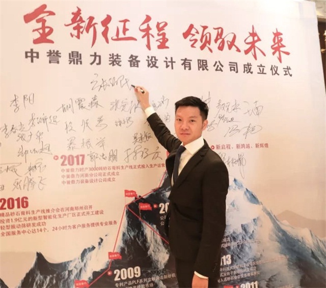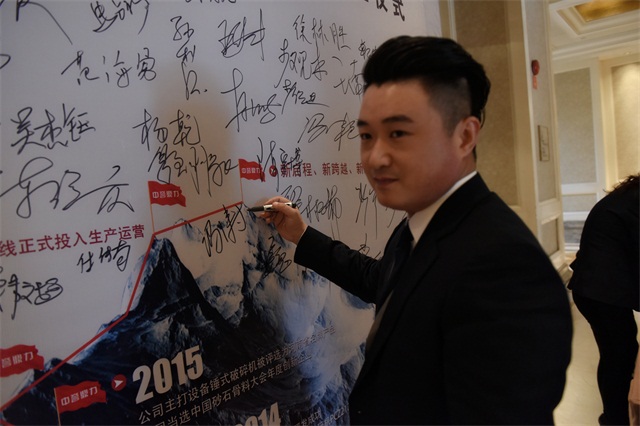 中譽(yù)鼎力裝備設(shè)計公司總經(jīng)理馮濤在簽字墻上簽名