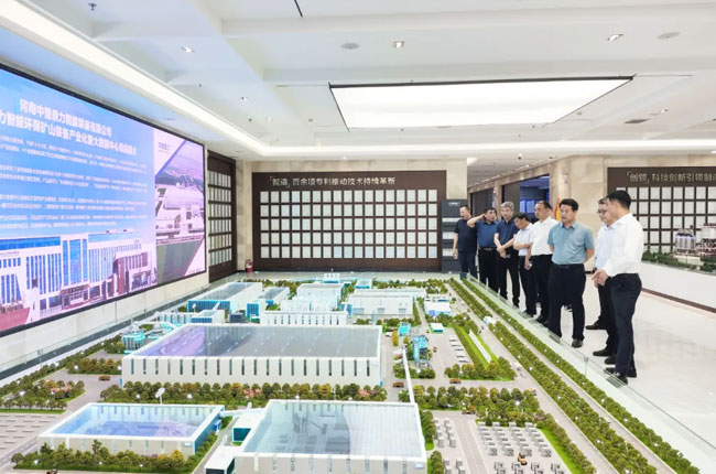 調研組一行先后參觀了中譽鼎力綠色建材大數(shù)據(jù)、十二位一體綠色建材循環(huán)經(jīng)濟產(chǎn)業(yè)園沙盤,并觀看中譽鼎力企業(yè)介紹視頻。