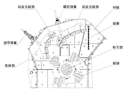 重型化轉子設計,板錘座厚重堅固,使得轉子由的轉動慣性和沖擊破碎力,破碎比大,產品粒形好