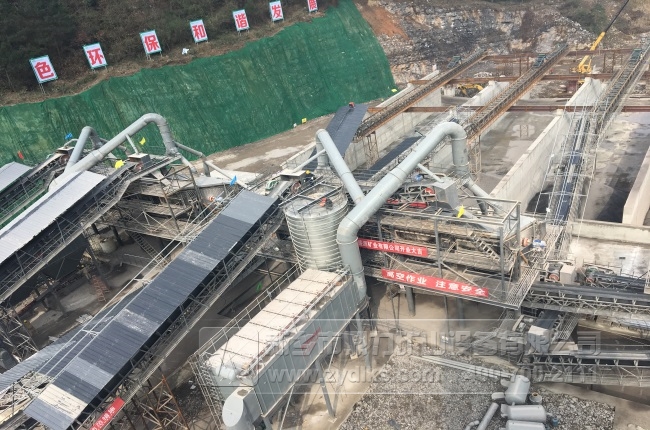 上圖為貴州遵義同興源建材時(shí)產(chǎn)1000噸骨料生產(chǎn)線生產(chǎn)現(xiàn)場(chǎng),排列整齊的皮帶輸送帶有序的運(yùn)送骨料,在一些皮帶輸送機(jī)密集的區(qū)域,設(shè)置了脈沖袋式除塵器,也是由中譽(yù)鼎力研發(fā)的,將設(shè)備安裝在基臺(tái)上方,占地面積小,節(jié)省基建投資。