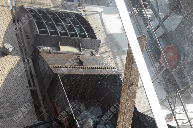 粗碎——原料經(jīng)振動(dòng)給料機(jī)均勻的送到重型錘式反擊破碎機(jī)PCZ1615進(jìn)行加工破碎