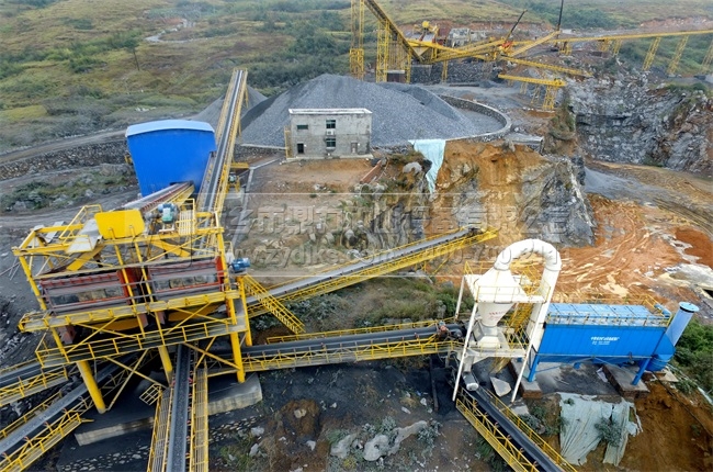 從時(shí)產(chǎn)500噸石灰石制砂生產(chǎn)線圖集上我們可以看到,在生產(chǎn)線上各除塵點(diǎn)配置了DMCA型礦山除塵器和礦山振動篩,經(jīng)過至少兩次篩分的過程,可以達(dá)到終篩分的,再進(jìn)入到下一道生產(chǎn)程序中,DMCA型礦山除塵器,可以將石料生產(chǎn)中粉塵吸收率提高到90%以上。