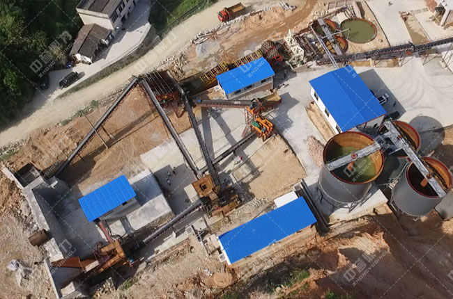 原料經(jīng)過振動給料機均勻的送到錘式破碎機進行粗碎,粗碎后的物料被輸送到KPC1313雙腔硬巖破碎機進行再次破碎整形,后被輸送到一組并篩進行篩分,篩分出來的大塊物料被返回硬巖破碎機進行再次破碎,小于1-3的料被輸送到中轉(zhuǎn)倉后再次被輸送到并篩中進行篩分,篩分出來的成品砂被輸送到兩臺輪式洗砂機中進行清洗,后得到潔凈度比較高的成品砂。