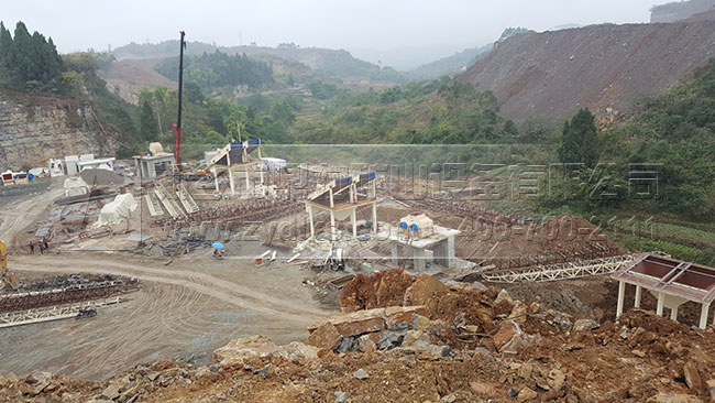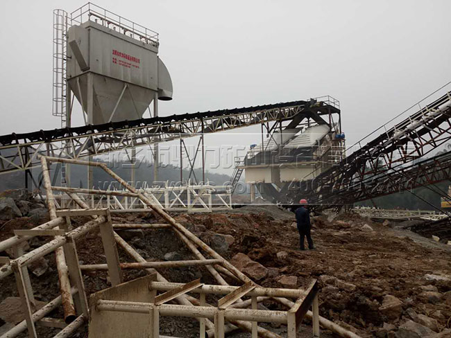 此條時產(chǎn)600噸砂石料生產(chǎn)線主要包括2臺重錘破、11臺篩分設(shè)備、2臺ZSJ1218制砂機,并且配備有完備的中轉(zhuǎn)倉和環(huán)保除塵設(shè)備,設(shè)備產(chǎn)能是比較大,預(yù)計設(shè)計的產(chǎn)能是500噸,在實際的生產(chǎn)中達到了600-700噸,生產(chǎn)效果良好。