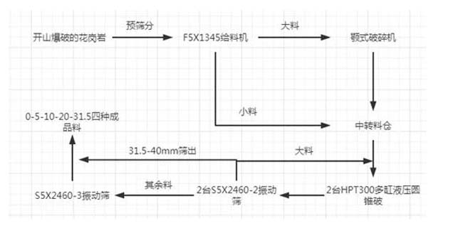 2、花崗巖時產(chǎn)500噸的砂石生產(chǎn)線——破碎