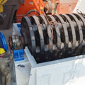 轉(zhuǎn)子盤上我們采用ZGMn17Cr2材質(zhì)做護圈,無需鋪焊焊條,采用卡簧銷軸固定護套,更換方便,從而勞動強度,增加開機時間。