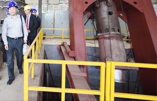 我們采用熱復合雙金屬高鉻合金錘頭,此材質(zhì)強度高,破碎石灰石可達80—120萬噸。