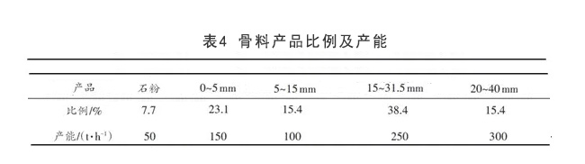 單獨(dú)計(jì)算骨料生產(chǎn)線各個(gè)產(chǎn)品所占份額及處理量見表4。