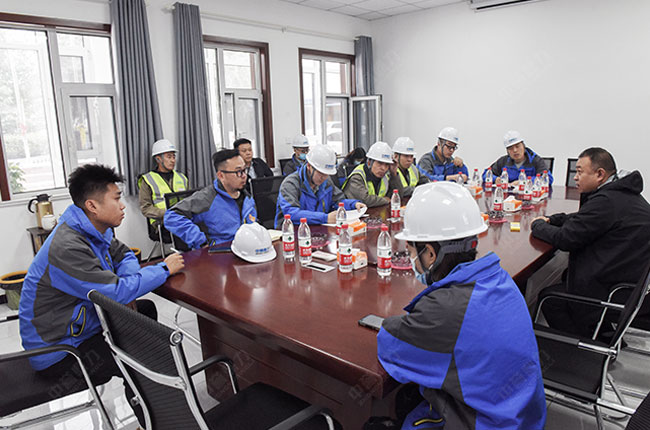 售后服務(wù)團(tuán)隊(duì)在會(huì)議室與生產(chǎn)線負(fù)責(zé)人王總溝通了項(xiàng)目建設(shè)的具體情況后,來到現(xiàn)場(chǎng)查看施工狀況,并囑咐公司安裝隊(duì)精良作業(yè),施工安裝的質(zhì)量和工期。