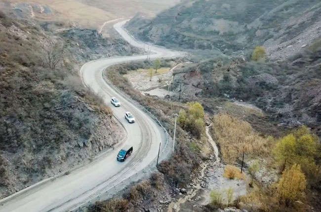 山路蜿蜒,售后車輛持續(xù)前行