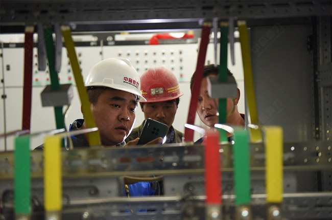 馬部長在配電室檢查運行情況