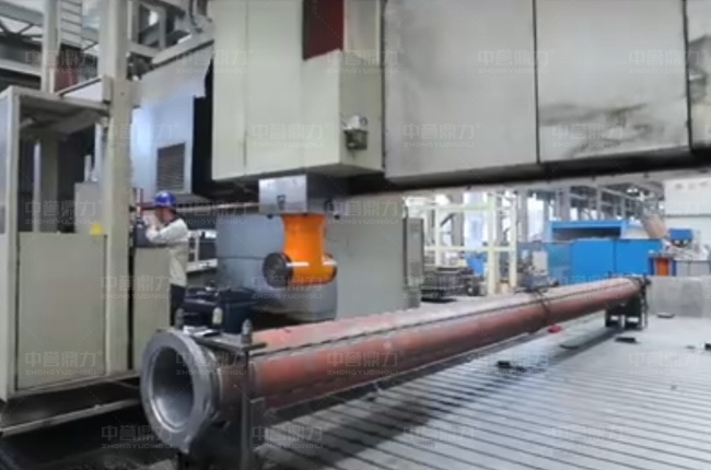 設(shè)備主軸長(zhǎng)11米左右,區(qū)別于市面上大多數(shù)用兩段拼接方式,中譽(yù)鼎力螺旋洗砂機(jī)采用通體11米長(zhǎng)主軸,通過XK2852橋式數(shù)控龍門銑鏜床一體化加工成型(上圖所示),這樣可使設(shè)備內(nèi)應(yīng)力小,抗振性能好;螺旋葉片經(jīng)過高溫處理,強(qiáng)度更高;超聲波清理軸承室,表面油污和雜質(zhì),提高軸承室外表和內(nèi)孔的清潔度,避免運(yùn)行中軸承過熱現(xiàn)象。
